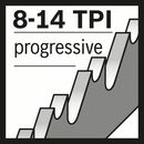 Das S 123 XF Progressor for Metal Säbelsägeblatt macht schnelle gerade Schnitte in dickes und dünnes Metall. Seine progressiv ansteigende Zahnteilung (1,83,2 mm) ermöglicht schnelle Schnitte in Materialien mit unterschiedlichen Dichten. Zudem ist das Blatt aus Bimetall beim Schneiden von Stahlrohren und -profilen mit normaler Stärke vorgesehen. Es verfügt über eine spezielle Zahnform für das Schneiden von Stahl mit verschiedenen Wandstärken von 18 mm. Das Blatt hat eine Standardlänge von 150 mm und eine Schnittleistung von bis zu 100 mm. Geeignet für Säbelsägen mit 0,5-Zoll-Universalschaftsystemen. Werkstoff: BIM, Zahnausführung: geschränkt, gefräst, Zahnteilung [mm] / TPI: 1,8-3,2 / 8-14, Abmessungen LxBxD [mm]: 150 x 19 x 0,9, Einsatzbereiche: dünne bis starke Bleche (1-8 mm), dünne bis kräftige Profile (ø <100 mm), Progressiv, Typ: S 123 XF.