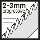 Das T 234 X Progressor for Wood Stichsägeblatt für den Gebrauch bei dickem oder dünnem Holz macht saubere gerade Schnitte. Die Zahngeometrie mit progressiv ansteigender Zahnteilung ermöglicht den Gebrauch bei Materialien mit unterschiedlichen Dichten. Die Kombination des Kegelschliffkörpers, der präzisionsgeschliffenen Zähne und der mehrfach geschliffenen japanischen Zahngeometrie ermöglicht sauberes Schneiden. Das Blatt aus Kohlenstoffstahl ist zum Schneiden von Weichholz und nicht-abrasiven Holzwerkstoffen geeignet. Es ist mit einer mittleren progressiven Zahnteilung (2-3 mm) und einer großen Länge (117 mm) ausgestattet, um eine breite Vielzahl an Holzwerkstoffen mit einer Dicke von 3-65 mm zu schneiden. Für den Gebrauch mit Stichsägen mit T-Schaft-Aufnahme. Werkstoff: HCS, Zahnausführung: freiwinkel-, zähnegeschliffen, Gesamtlänge [mm]: 117, Zahnteilung [mm]: 2-3, Einsatzbereiche: Weichholz (3-65 mm), Span-, Tischler-, Faserplatten, Progressiv, Typ: T 234 X.
