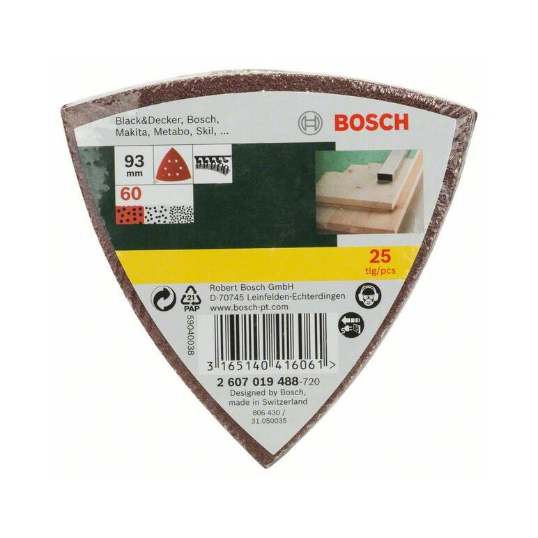 Bosch Accessories 2607019488 Deltaschleifpapier mit Klett, gelocht Körnung 60 Eckmaß 93mm 25St.