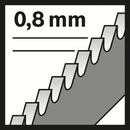 Das T 118 GFS Basic for Stainless Steel Stichsägeblatt macht gerade Schnitte in Edelstahl. Die gefräste, gewellte Zahngeometrie ist zum Schneiden von Edelstahl konzipiert. Die Zahnleiste aus gehärtetem speziellem HSS (Hochgeschwindigkeitsstahl) und BIM (Bimetall) ist mit hochelastischem HCS (Kohlenstoffstahl) verstärkt und bietet sowohl genügend Festigkeit als auch Flexibilität, die beide erforderlich sind, um dünne, massive und perforierte Bleche aus Edelstahl zu schneiden. Die sehr feine Zahnteilung (0,8 mm) schneidet zudem sehr dünne Bleche aus Edelstahl mit einer Dicke von 0,5-1,5 mm. Für den Gebrauch mit Stichsägen mit T-Schaft-Aufnahme. Werkstoff: BIM, Zahnausführung: gewellt, gefräst, Gesamtlänge [mm]: 83, Zahnteilung [mm]: 0,8, Einsatzbereiche: Sägen in Inox / Edelstahl, rostfrei, Typ: T 118 GFS.