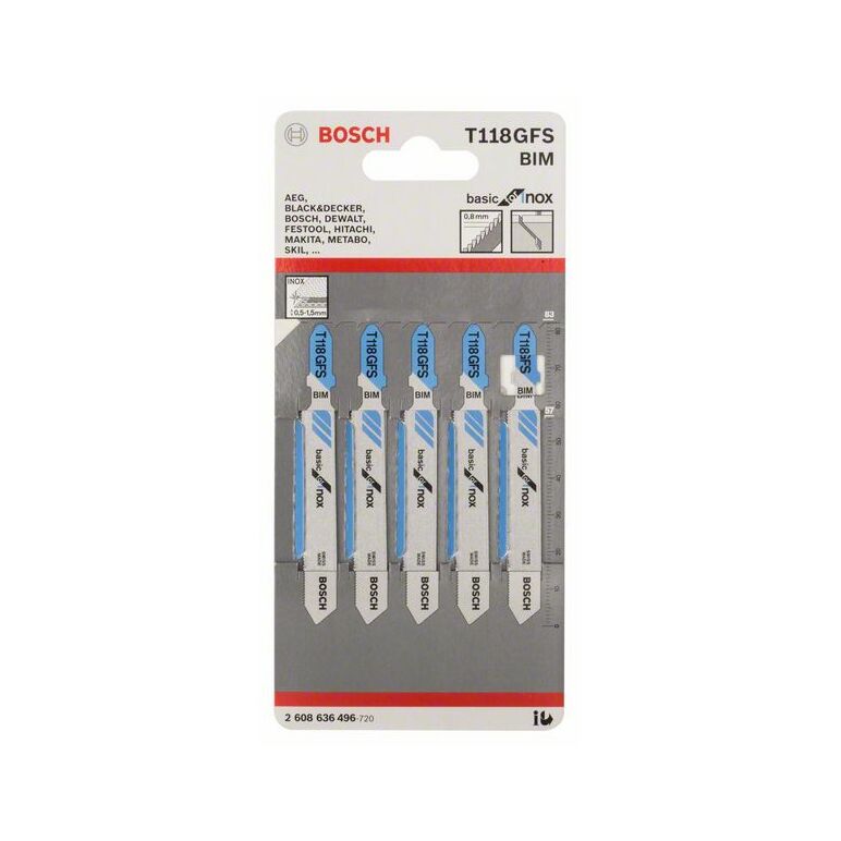 Bosch Stichsägeblatt T 118 GFS Basic for Stainless Steel, 5er-Pack (2 608 636 496)