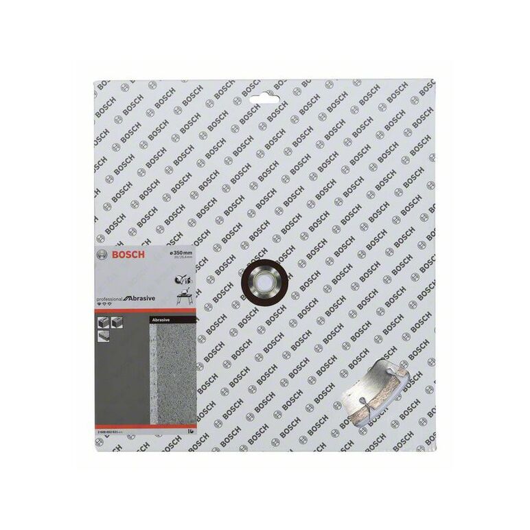 Die Diamanttrennscheibe Standard for Abrasive hat bei Arbeiten mit abrasivem Material aller Art eine hoher Lebensdauer. Die optimierte Diamantmatrix ermöglicht zuverlässige Ergebnisse, denn das Bosch-Kompetenzzentrum Diamant in der Schweiz gewährleistet den hohen Standard der Scheibe. Die Scheibe ist für das Schneiden von abrasivem Material aller Art geeignet. Durchmesser mm: 350, Bohrungsdurchmesser mm: 20,00/25,40*, Schnittbreite mm: 2,8, Segmenthöhe mm: 10.
