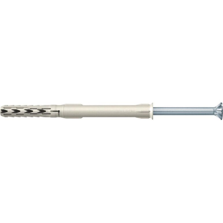 Rahmendübel URD-T mit Senkkopfschraube (kurz), galvanisch verzinkt ● Langschaft-Nylon-Dübel mit kurzem Spreizteil mit nur 50 mm Verankerungstiefe ● Mit passender, galvanisch verzinkter Sicherheitsschraube mit Senkkopf und T-Antrieb ● Mitdrehsicherung für eine sichere Montage ● Dübel spreizt in Vollbaustoff und verknotet im Lochbaustoff ● ETA-17/0811 für Mehrfachbefestigungen zur Verankerung von z. B. Fassadenunterkonstruktionen in Beton, Voll- und Lochsteinmauerwerk weitere Info's: Typ: URD 10x260 T Bohr-Ø: 10 mm Dübellänge: 260 mm Bohrlochtiefe bei Durchsteckmontage min. h2: 270 mm Verankerungstiefe min.: 50 mm Dicke des Anbauteils max.: 210 mm Antrieb T: 40 Marke: Upat