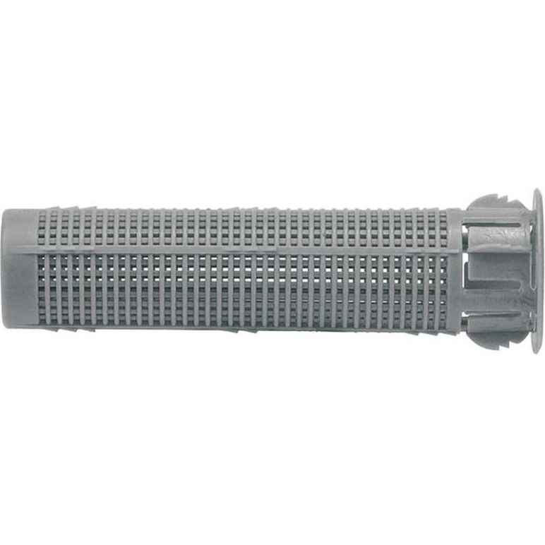 Injektions-Ankerhülse Kunststoff FIS H K ● Die Gitterstruktur der Ankerhülse FIS H K ist abgestimmt auf die Injektionsmörtel FIS V, FIS V HIGH SPEED und Montagemörtel sorgt für sparsamen Mörtelverbrauch bei optimalem Formschluss ● Die Zentrierflügel richten das Befestigungselement in der Ankerhülse ideal aus und ermöglichen den Einsatz verschiedener Ankerstangendurchmesser ● Die Widerhaken halten die Ankerhülse im Bohrloch und ermöglichen so eine problemlose Überkopfmontage ● Die Geometrie der Ankerhülsen erlaubt die Überbrückung nicht tragender Schichten für eine bequeme und einfache Montage ● ETA-10/0383 Zugelassen für: Hochlochziegel, Hohlblöcke aus Leichtbeton, Hohlblocksteine aus Beton, Kalksandlochstein, Kalksandvollstein, Vollziegel Auch geeignet für: Bimsholstegdielen, Hohlkörperdecken und andere Lochsteine, Vollbims und andere Vollbaustoffe weitere Info's: Typ: FIS H 20 x 130 K Bohrernenn-Ø: 20 mm Dübellänge: 130 mm Bohrlochtiefe min.: 140 mm Verankerungstiefe min.: 110 mm