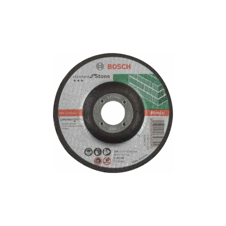 Die Trennscheibe Standard for Stone schneidet zuverlässig in Stein. Das Blatt aus hochwertigem Siliziumkarbid und Harz ist speziell für Steinarbeiten konzipiert. Das Produkt ist für Steinarbeiten geeignet. Für Bosch Winkelschleifer. Trennscheiben von Bosch erfüllen die höchsten Sicherheitsanforderungen wie EN 12413. Spezifikation: C 30 S BF, Durchmesser mm: 230, Bohrungsdurchmesser mm: 22,23, Dicke mm: 3,0.