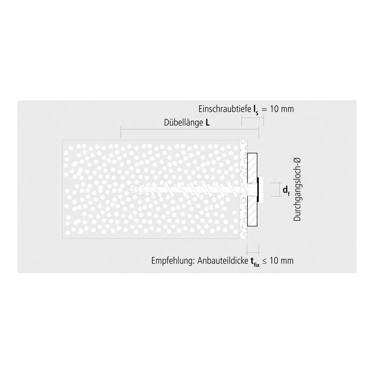 Die Isolierplattenschraube ist eine Spezialschraube für die Direktbefestigung in Wärmedämm-Verbundsystemen. Sie wird zur wärmebrückenfreien Befestigung im Dämmstoff von Wandanschlussprofilen · Blechen · Sockelschutzleisten · Schildern etc. verwendet. Aufgrund der scharfen Bohrspitze entfällt das Vorbohren in Putz (bis 7mm). Die Isolierplattenschraube besteht aus glasfaserverstärktem Nylon mit EPDM-Dichtung und ist dadurch alterungs- · witterungs- und UV-beständig. Die Schraube ist in 7 verschieden Farben erhältlich und hat einen formschönen Flachkopf. Optimal Einschrauben lässt sich die Schraube bei einem Durchgangsloch von 8 mm Duchmesser · dass vor allem bei Wandprofilen üblich ist. Aufgrund der Kopflochbohrung ist die Isolierplattenschraube auch für leichte Befestigungen mit ø 3,5 mm Schrauben gut geeignet.Weitere technische Eigenschaften:· RAL: 9003· Antrieb: TX25· Anwendungsbeispiele: Wandanschlussprofile, Bleche, Sockelschutzleisten, Gesimsabdeckungen, Bewegungsmelder, Beleuchtungen, Schilder· Dübellänge [mm]: 80mm· Durchgangsloch [mm]: 8-10mm· Marketingclaim: Schnelle, flexible, wärmebrückenfreie Direktbefestigung in WDVS!· Materialeignung: Wärmedämm-Verbundsysteme (WDVS), Styroporplatten, Hartschaumplatten, Polystyrolplatten· Typ: IPS 80 Signalweiß· Verpackungsart: Box· Vorteile: Spezialschraube für die Direktbefestigung in Wärmedämm- Verbundsystemen (WDVS) - extrem schnell und wärme- brückenfrei!, Für die Befestigung im Dämmstoff von Wandanschlussprofilen, Blechen, Sockelschutzleisten, Gesimsabdeckungen, Bewegungsmeldern, Beleuchtungen, Schildern etc., Vorbohren in Putz entfällt (≤ 7 mm) aufgrund scharfer Bohrspitze, Spezialschraube aus glasfaserverstärktem Nylon mit EPDM-Dichtung, alterungs-, witterungs- und UV-beständig, Formschöner Flachkopf, verschiedene Farben, Einschraubbar in Durchgangslöcher Ø 8 mm (üblich bei Wandprofilen), Geeignet auch für leichte Befestigungen aufgrund Kopflochbohrung mittels Schraube Ø 3,5 mm, Kein Vorbohren nötig (≤ 7 mm), Spezialschraube aus glasfaserverstärktem Nylon mit EPDM Dichtung, Formschöner Flachkopf, Einschraubbar in Durchgangslöcher Ø 8 mm, Mit Kopflochbohrung für zusätzliche Befestigungsmöglichkeit