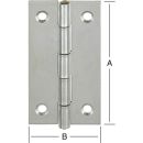 Scharnier, schmal DIN 7954 A ● Gerollte Scharniere, Stahl verzinkt ● Vernieteter Messingstift weitere Info's: A x B x Stärke: 90 x 46 x 1,5 mm Schrauben: 6 Schrauben-Ø: 3,5 mm Marke: Vormann
