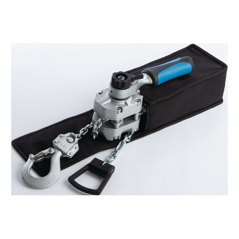 geschlossenes Aluminium-Druckgussgehäuse · kompakte Bauweise · Freilaufschaltung der unbelasteten Kette · zwei robuste Hakensicherungen · ein robustes Kettenendstück verhindert das Durchrutschen · einsetzbar bei Temperaturen von -20 °C bis +60 °CWeitere technische Eigenschaften:· prüfpflichtig: ja