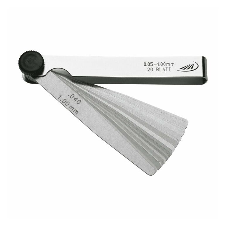 - Fühlerlehre, bestehend aus 32 konisch geformten Fühlerlehrenblättern