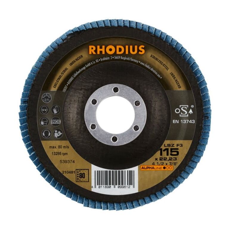 RHODIUS ALPHAline LSZ F3 Fächerschleifscheibe 125 x 22,23 mm K80