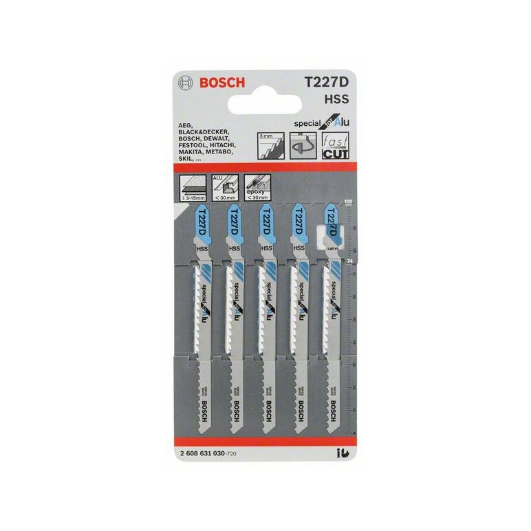Bosch Accessories 2608631030 Stichsägeblatt T 227 D Special for Alu, 5er-Pack 5St.