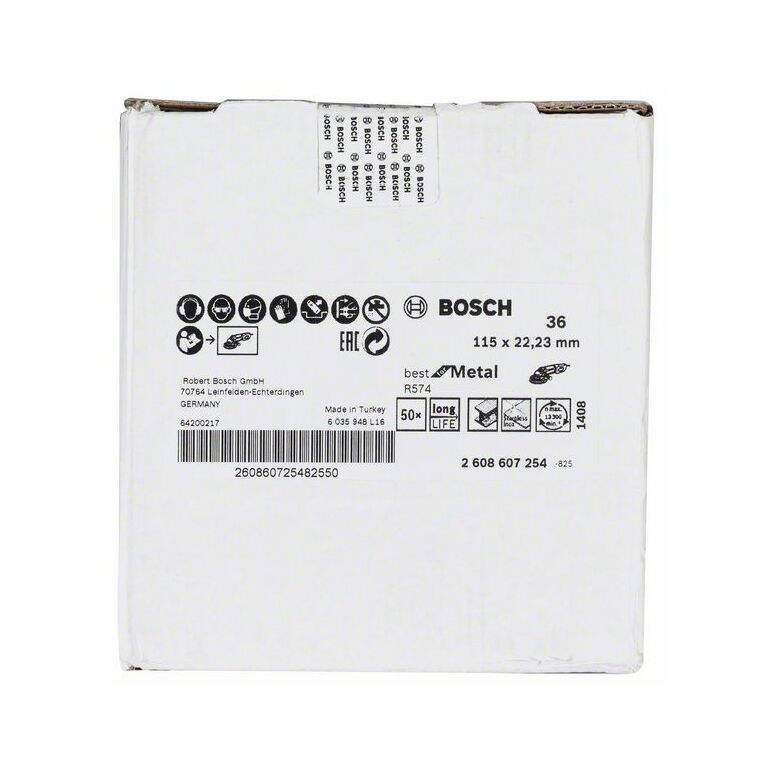 Bosch Fiberschleifscheibe R574 Best for Metal, Zirkonkorund, 115 mm, 22,23 mm, 36 (2 608 607 254)