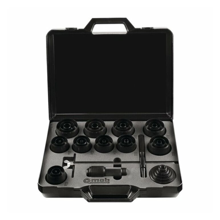 • in Stahlblechkasten mit Stahlhalter, Zentrierer sowie gehärteten Stahl-Innen- und -Außenstempeln