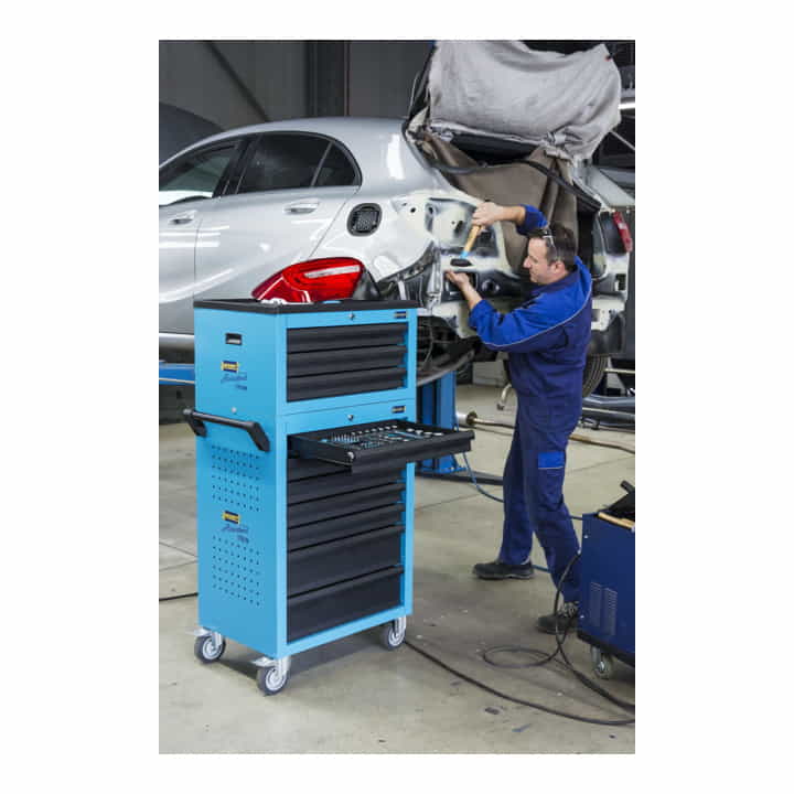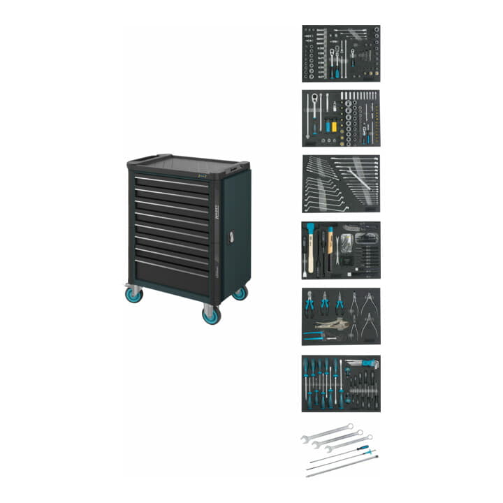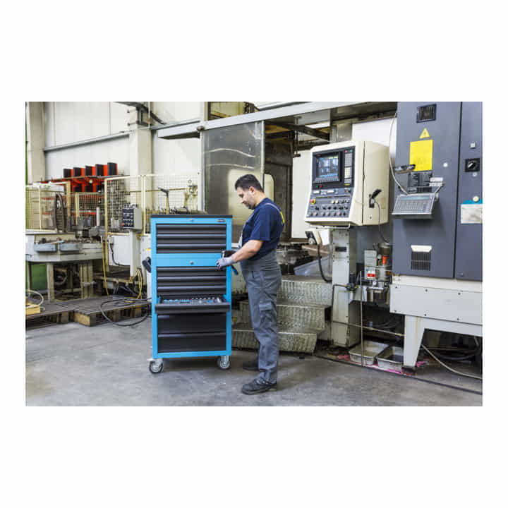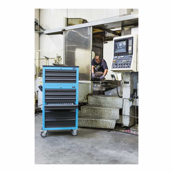 STABIL: Das fahrbare und abschließbare Werkzeug-Aufbewahrungssystem besteht aus einer langlebigen und robusten Stahlblechkonstruktion. Es eignet sich ideal zur flexiblen Arbeit in der Werkstatt.