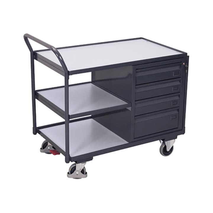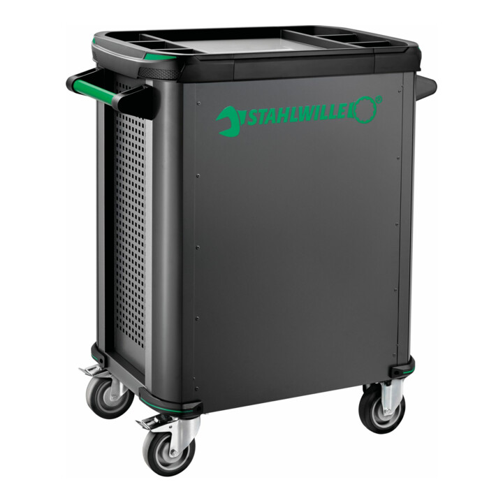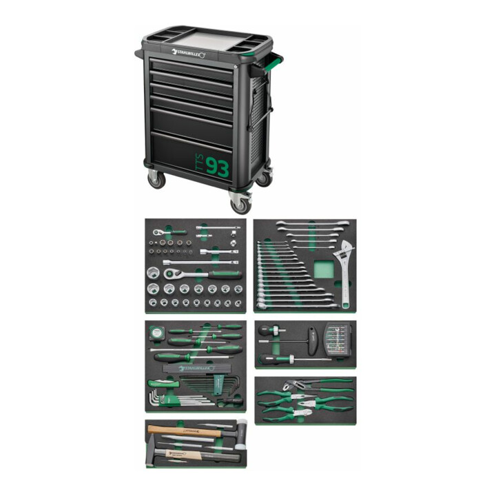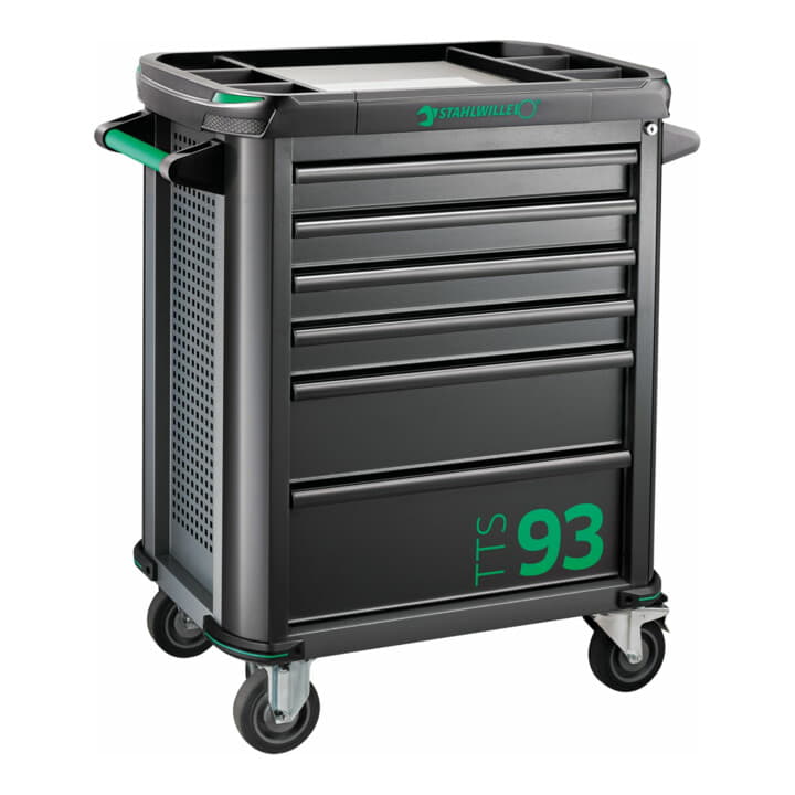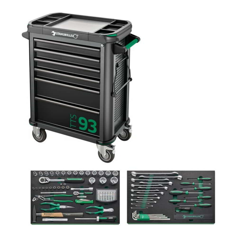 Werkstattwagen TW1100 scheppach - inkl. 70-tlg. Werkzeugset B-Ware Der scheppach Werkstattwagen TW1100 ist Ihr universeller Helfer in Werkstatt und Garage. Der robuste Metallrahmen macht den Wagen beinahe unverwüstlich und dank der vier großen und leichtgängigen Räder ist er einfach transportierbar. Die Schubladen lassen sich bequem abschließen, so dass das inkludierte 70-teilige Werkzeugset auch sicher verwahrt ist. Durch die Belastbarkeit von 450 kg kann der Werkstattwagen auch ohne Bedenken als Ablage für schwere Werkstücke genutzt werden. Inklusive 70-teiligem Werkzeugset Große leichtgängige Räder Abschließbar für eine sichere Werkzeugaufbewahrung Belastbar bis 450 kgAlles an einem Ort und jederzeit griffbereit – mit dem TW1100 Werkstattwagen lässt sich in einer großen Werkstatt sämtliches Werkzeug auf einmal zum Ort des Geschehens bringen. So entfallen Laufwege durch die Werkstatt, um einen passenden Schraubenschlüssel oder eine weitere Zange zu organisieren. Doch auch in kleinen Werkstätten ist ein Werkzeugwagen durchaus gut aufgehoben – gut sortiert und platzsparend verstaut ist die Grundausstattung an Werkzeugen, die jede Werkstatt haben sollte, in einem Werkstattwagen perfekt aufgehoben.Der TW1100 misst 775 x 470 x 975 mm bei einem Nettogewicht von knapp 59 kg. Die Traglast beträgt maximal 450 kg. Er verfügt über 7 große, leichtgängige Schubladen in unterschiedlichen Höhen (58, 128 und 195 mm) mit einer Tiefe von 391 mm. Die Schubladen lassen sich voll ausziehen, wodurch das Werkzeug bestens erreichbar ist.Der Werkstattwagen wird mitsamt 70-teiligem Inhalt geliefert. Unter anderem enthält er gängige Werkzeuge wie Hammer und Kunststoffhammer, neun Gabelringschlüssel, sechs Schlitzschraubenzieher und einen Phasenprüfer, vier Sicherungszangen und eine Rohrzange, zwei Umschaltknarren mit diversen Steckschlüsseleinsätzen, Universalverbindung, Verlängerungen und Schiebeadapter, ein Sechskantschlüssel-Set sowie zusätzliche Lagermöglichkeiten.Die große Ablagefläche mit extra Halterung ermöglicht die sichere Ablage oft benötigter Werkzeuge. So sind sie noch leichter erreichbar, ohne Schubladen öffnen zu müssen oder Platz in der Werkstatt durch offenstehende Schubladen zu verlieren.Vier große, leichtgängige Räder und zwei Griffe mit Soft-Grip erleichtern den Standortwechsel des TW1100. Für das sichere Abstellen verfügen die Räder über eine Sperrfunktion.Der Werkstattwagen ist mit einem Schloss ausgestattet. So kann das Werkzeug sicher verstaut und vor Diebstahl geschützt werden.Inhalt Werkstattwagen: 1 Stk. Kunststoffhammer, 500 g 9 Stk. Gabelringschlüssel 6 Stk. Innensechskantschlüssel mit Kugelkopf: 2x100 mm, 2,5x100 mm, 3x100 mm, 4x150 mm, 5x150 mm, 6x150 mm 13 Stk. Steckschlüsseleinsätze: 4 mm – 14 mm 1 Stk. Umschaltknarre 1/4inches 1 Stk. Universalverbindung 1/4inches 2 Stk. Verlängerung: 2inches + 4inches 1 Stk. Schiebeadapter 1/4inches 1 Stk. Schraubendreher 1/4inches 9 Stk. Gabelringschlüssel (6,8,9,10,11,12,13,14,17) 6 Stk. Schraubendreher für Schlitzschrauben: 1 Phasenprüfer, 4x100 mm, 5x100 mm, 3x75 mm, 6x150 mm, 6x38 mm, 8x200 mm 1 Stk. Rohrzange