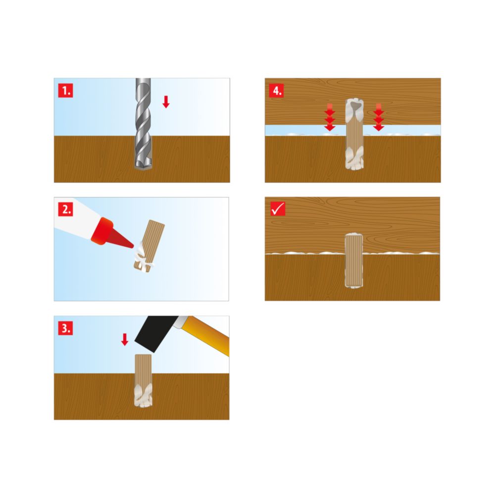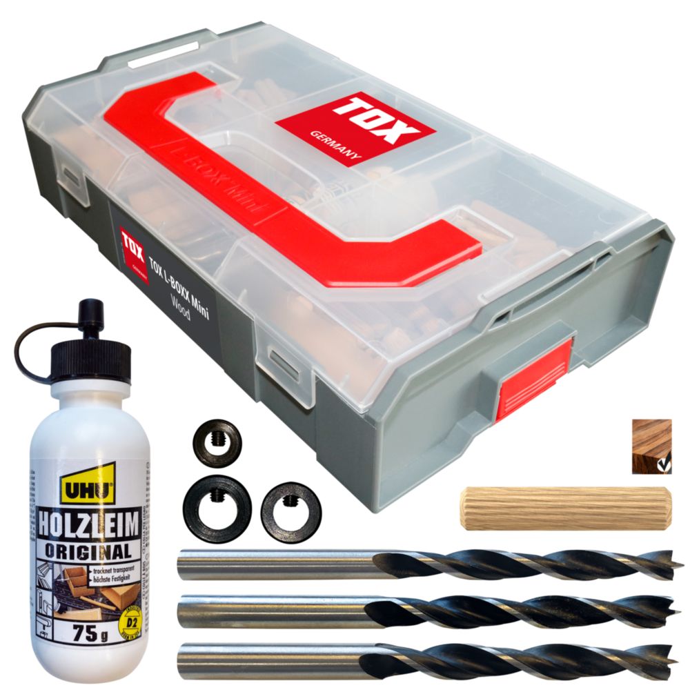 Die TOX Holzdübel sind sortenrein in der handlichen Runddose oder als Sortiment in einer robusten vorsortierten Box erhältlich.