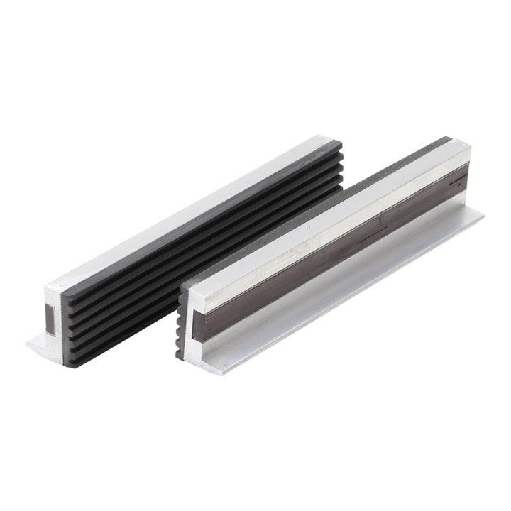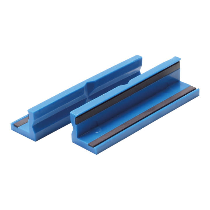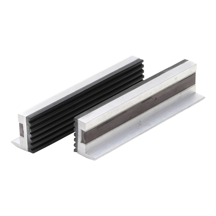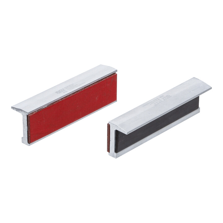Die Schutzbacken haben einen kräftigen Grundkörper aus Aluminium. Das Profil ist rechtwinkelig und planparallel; die ho