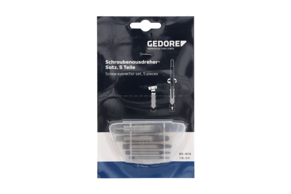 Lieferumfang: 1 x 5-teiliger Schraubenausdreher-Satz in Kunststoffbox, M3-M18, Chrom-Vanadium Stahl, 54-56 HRC, Nettogewicht: 125 g, 8551 S-005 / 2659336