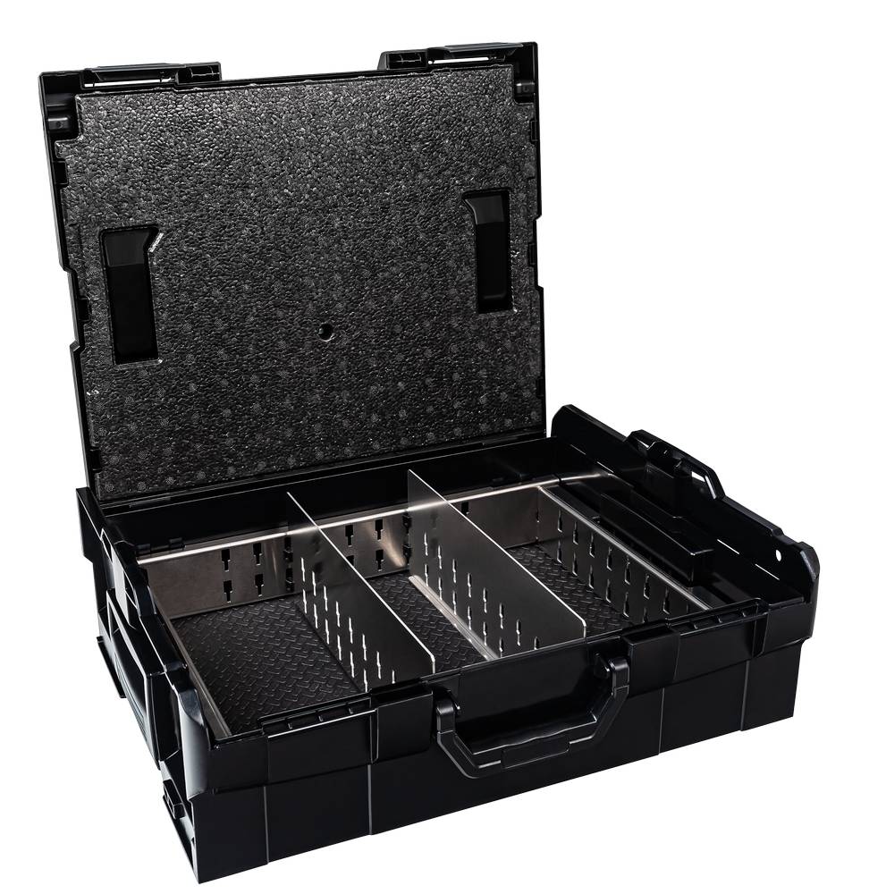 Das Trennblechset 4F LB 136 ermöglicht Ihnen eine einfache und flexible Aufteilung der L-BOXX oder des obersten Fachs der LS-BOXX in bis zu 4 Fächer. Das hochwertige Trennblechset besteht aus robustem Aluminium und kann nachträglich und mühelos in Ihre Box eingesetzt werden. Dadurch schaffen Sie optimalen Stauraum für Ihre Werkzeuge, Zubehör oder andere Gegenstände.