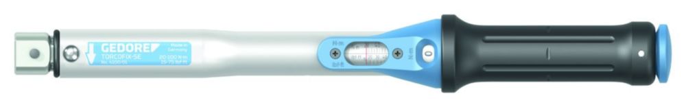 Lieferumfang: 1 x GEDORE Torcoflex UK Drehmomentschlüssel für den kontrollierten Rechtsanzug (1/2 Zoll, 20-100 Nm), Bedienungsanleitung, Rückführbares Prüfzertifikat für Auslösegenauigkeit (für Dokumentationszwecke/-pflicht in gewerblichen Betrieben), Stahlrohr, Schwarz/Blau, 3550-10 UK / 2958031