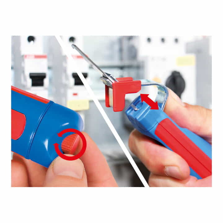 Anwendung: Zum Abmanteln dicker Kabeltypen und Aufschneiden der verschiedenen Lagen mehrfach isolierter Kabel.Für Arbeiten im Bereich von spannungsführenden Teilen bis 1.000 V AC.