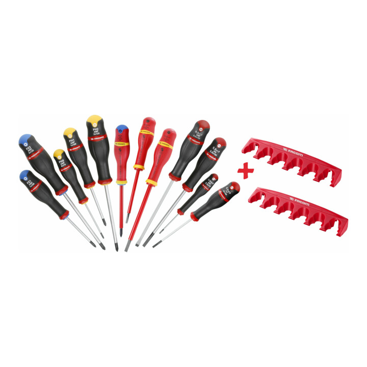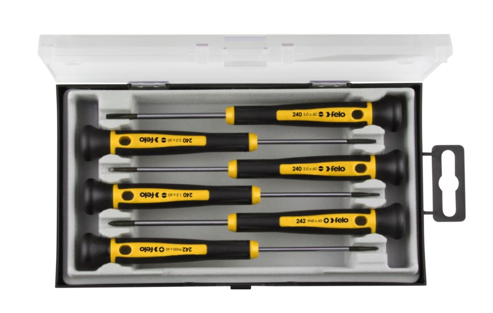Praxisgerechte Zusammenstellung mit den gängigsten Größen: VDE Schlitzschraubendreher 2,5, 4, 5,5, und 6,5 und VDE Kreuzschraubendreher (PH) 0, 1 und 2, Für die üblichsten Schraubengrößen und- arten
