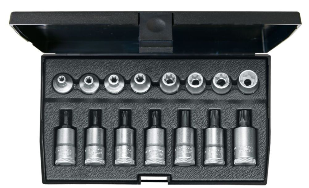 VARIABLE GRUNDAUSSTATTUNG: Das Set umfasst 9 Bit-Einsätze mit eingepresstem, phosphatiertem Stift für Innensechskantschrauben mit 5 bis 17 mm Schlüsselweite. Sie passen auf einen 1/2inches Vierkantantrieb.