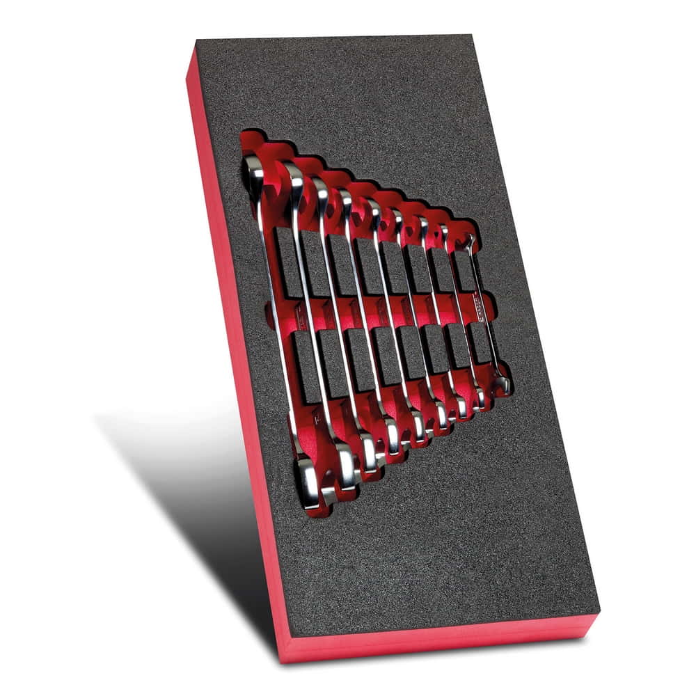 Das Facom 440.JP14 bietet ein praktisches Set mit 14 Ring - Maulschlüsseln und beinhaltet folgende Größen 7 - 8 -10 - 11 - 12 - 13 - 14 - 15 - 16 - 17 - 18 - 19 - 22 - 24 mm. Außerdem ist das Set stoßfest und beständig gegen Chemikalien. Verpackt ist das Set in dem sehr kompakten Facom Etui CK.440J3.