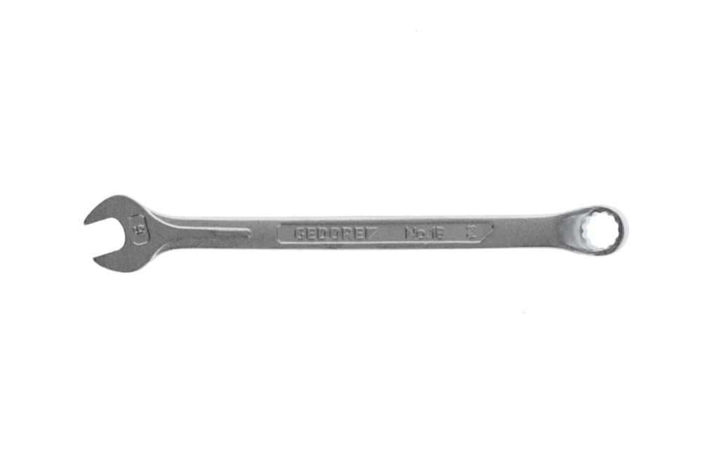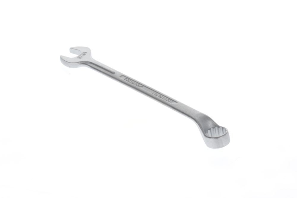 QUALITY MADE IN GERMANY: Der Schlüssel mit einem abgewinkelten und gekröpften Ring und einer Maulstellung von 15° wurde in Deutschland hergestellt und entspricht den hohen GEDORE Qualitätsansprüchen.