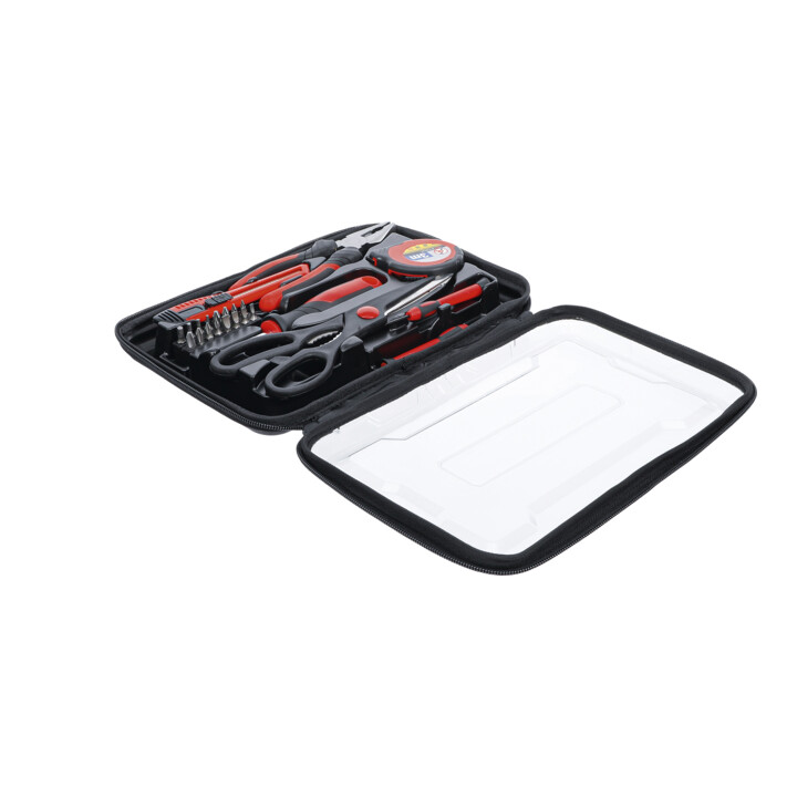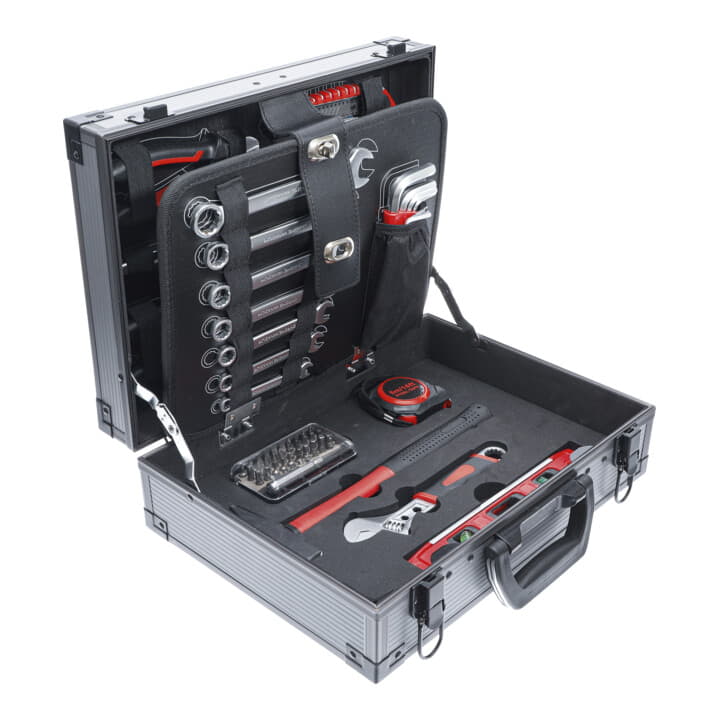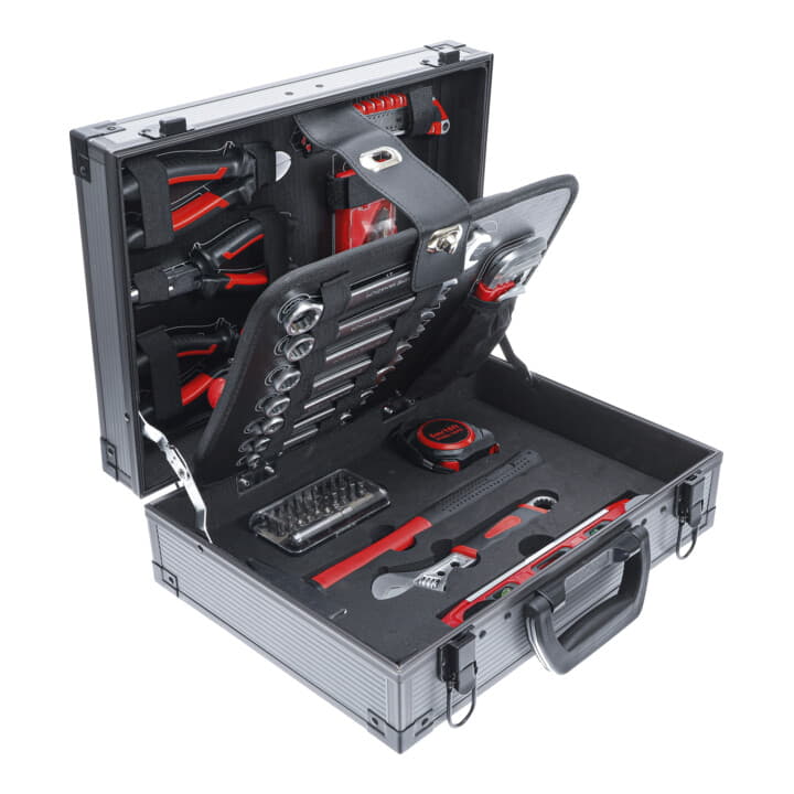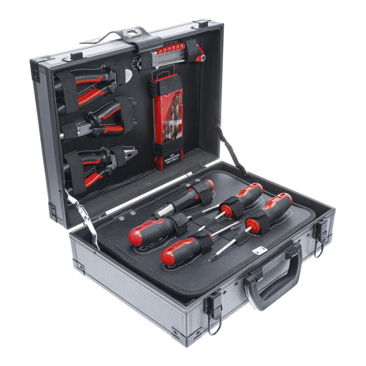 Die Firma Bessey bietet hier ein praktisches Set bestehend aus einem Multitool und zwei Hebelzwingen aus stabilen Magnesium, welche durch ihr geringes Gewicht und ihre hohe Stabilität zu überzeugen wissen. Außerdem verfügen sie über einen vielstufigen Rastmechanismus, welcher einfach bedienbar und jederzeit leicht zu lösen und dosieren ist. Durch das Kreuzprisma werden auch runde, spitze oder kantige teile sicher gehalten. Dabei ist der ergonomische Spannarm aus glasfaserverstärktem Polyamid bruchsicher und liegt sehr gut in der Hand. Das dem Set beiliegende Multitool verfügt hierbei über 8 verschiedene Funktionen. So ist hier neben der Zangenfunktion noch ein Messer, eine Schere, einen Kreuz- und einen Schlitzschraubendreher, ein Dosenöffner, eine Pfeile und eine Ahle mit Öhr vorhanden. Die Firma Bessey ist ein führender Hersteller für Spannwerkzeuge aller Art der sich durch seinelange Tradition und seine hohe Verarbeitungsqualität auszeichnet.