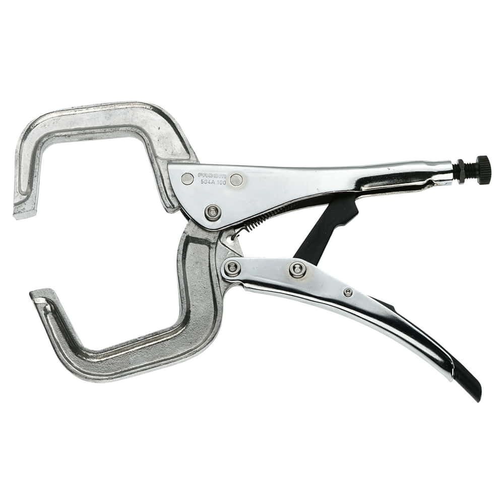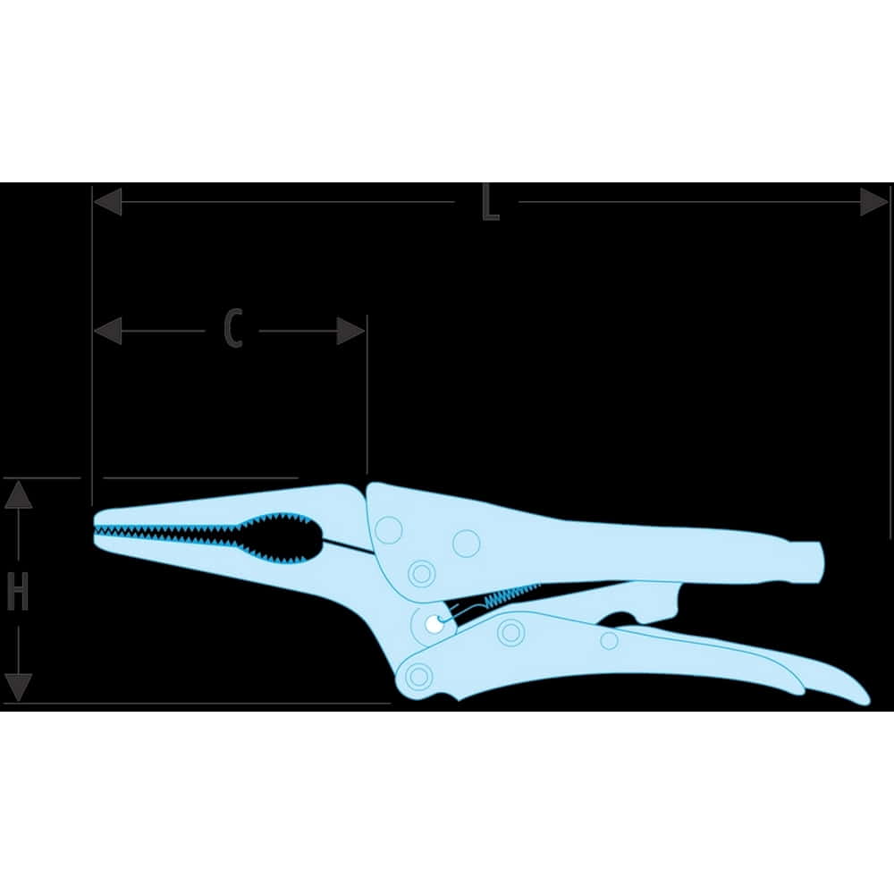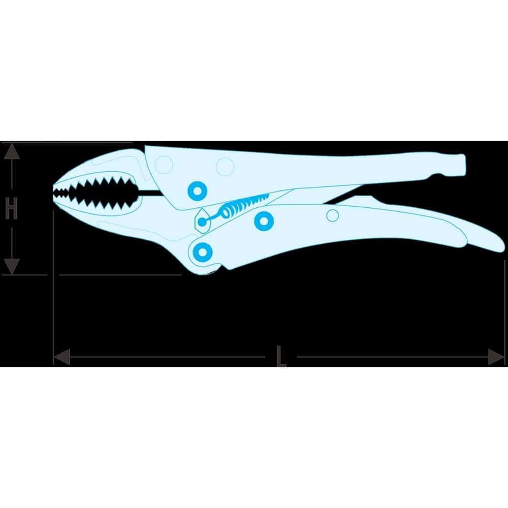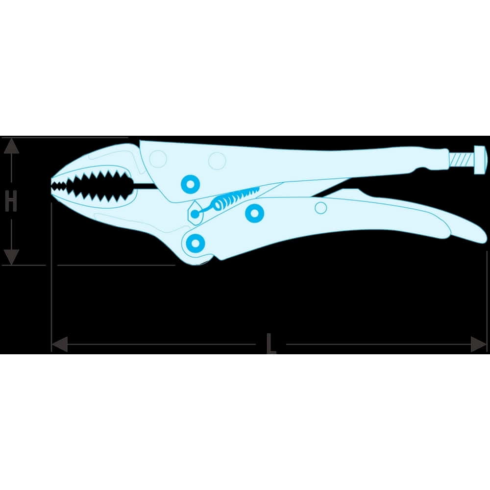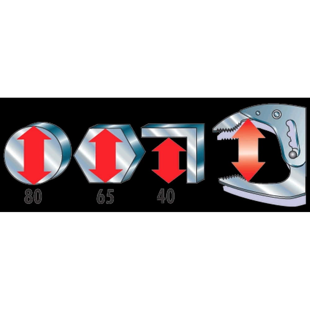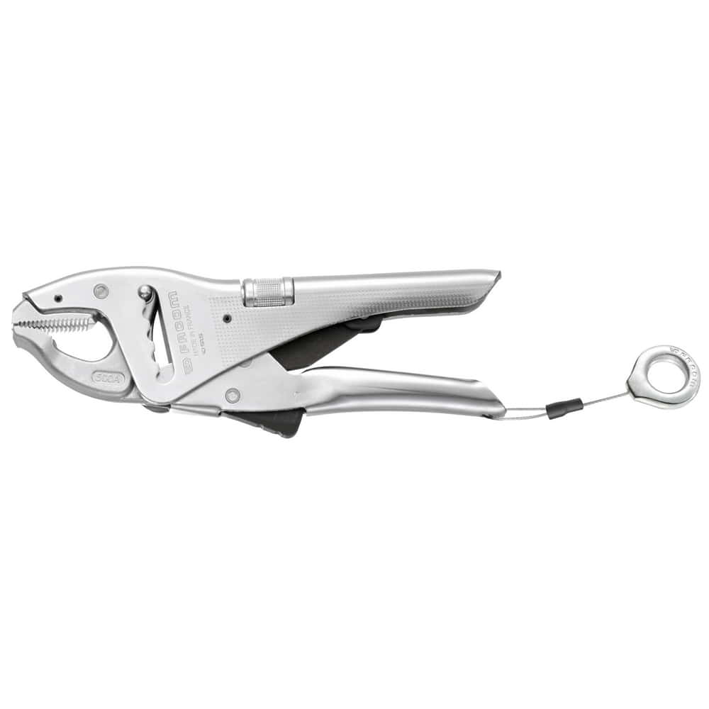 Ideal zum sicheren Arbeiten dank handlichem Griff mit längsverzahnten Greifflächen, Gabelkopföffnung zum fixieren von Profil-, Rund - und Flachmaterial