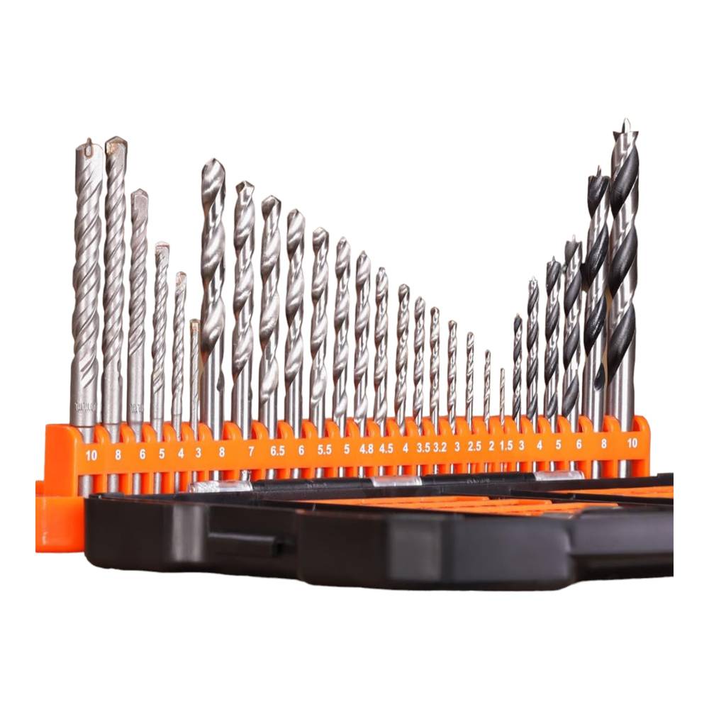 Dieses erstklassige Set aus Bohrern und Schraubendreher-Bits ist eine ideale Bereicherung für jede Werkstatt, jeden Werkzeugkoffer oder Haushalt. Das Paket beinhaltet eine Auswahl von 15 HSS-Bohrern, 6 für Mauerwerk, 3 Flachholzbohrer und 6 für Holz. Zusätzlich umfasst dieses handliche Set die gängigsten Bitgrößen mit 48x 25 mm und 7x 50 mm S2-Bits. Zu den weiteren Bestandteilen gehören 1 Senker, 9 Steckschlüssel, 4 Bohrstopper, 1 Magnethalter, 1 Inbusschlüssel und 1 Sechskantschlüssel, die für vielseitige Einsatzmöglichkeiten sorgen. Gefertigt aus hochwertigen Materialien wie S2, CR-V und HSS-Stahl, garantiert dieses Kit optimale Einsatzfähigkeit und langanhaltende Haltbarkeit.