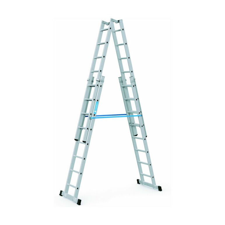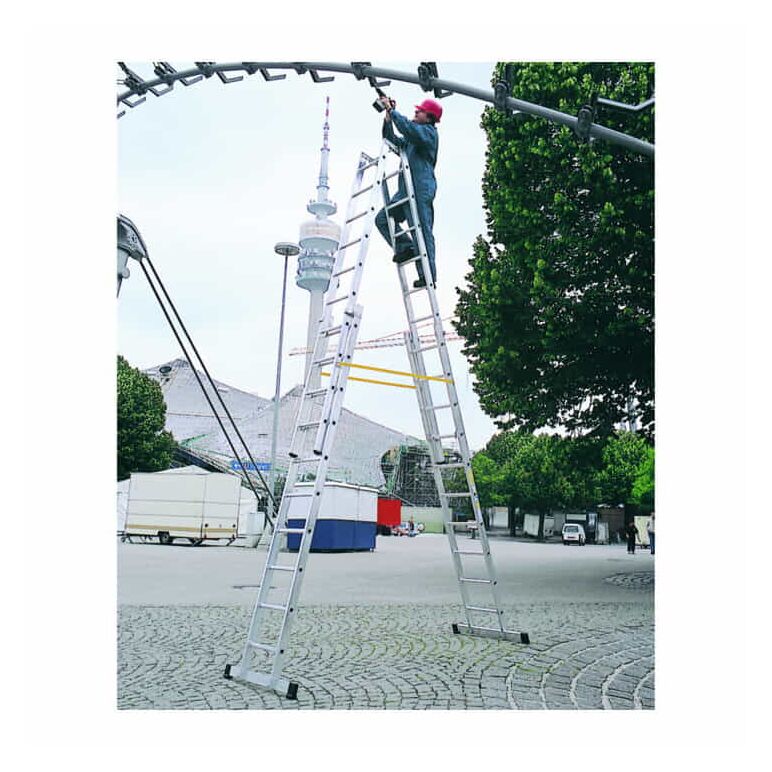 Treppengängige Mehrzweckleiter mit Ausziehfunktion für sicheren Stand in großen Höhen.