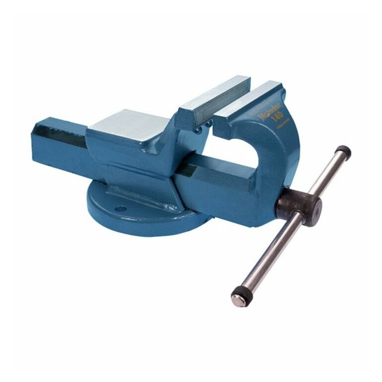 geschmiedet · absolut paralleles Spannen durch nachstellbare Präzisionsführung und Spindel mit doppelgängigem Trapezgewinde und auswechselbarer Spindelmutter · Spannbacken gefräst und oberflächengehärtet · ab Größe 120 mm mit Vorrichtung unter den Spannbacken zur Aufnahme von Zusatzbacken für spezielle Arbeiten · Ambossansatz gehärtet für Richt- und Staucharbeiten · mit Maßskala zur schnellen Voreinstellung der Spannweite · Schraubstock nach vorn öffnend Weitere technische Eigenschaften: · Gewicht: 10kg · Lochabstand: 115mm · Bohrungs-Ø: 14,0mm · Amboss Größe (axb): 75 x 70mm · Gesamtlänge: 340mm