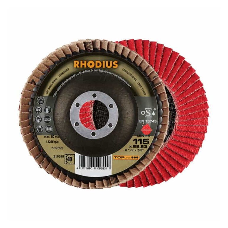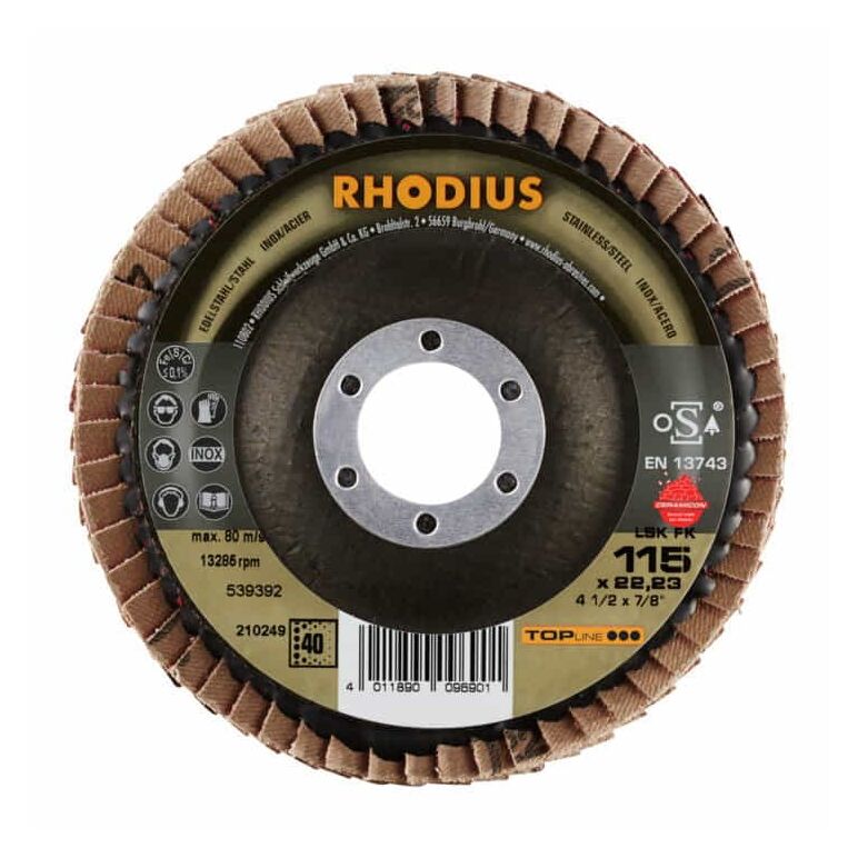 RHODIUS TOPline LSK FK Fächerschleifscheibe 115 x 22,23 mm K80