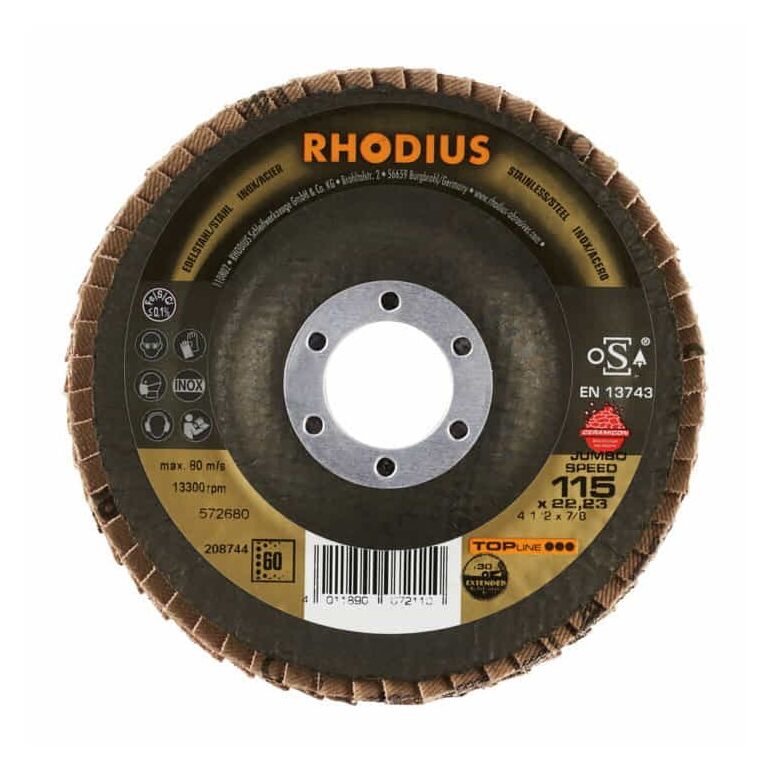 RHODIUS TOPline JUMBO SPEED EXTENDED Fächerschleifscheibe 125 x 22,23 mm K40