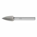 - Spitzbogenförmiger Frässtift nach DIN 8032 mit Verzahnung nach DIN 8033, Spitze abgeflacht