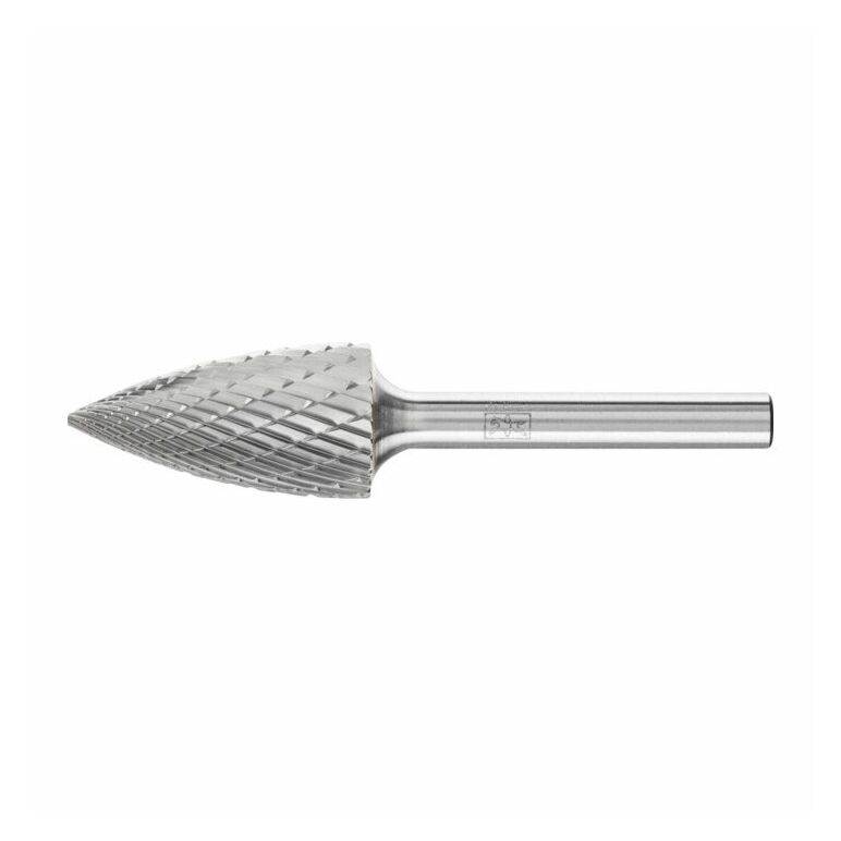 - Spitzbogenförmiger Frässtift nach DIN 8032 mit Verzahnung nach DIN 8033, Spitze abgeflacht