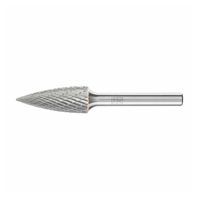- Spitzbogenförmiger Frässtift nach DIN 8032 mit Verzahnung nach DIN 8033, Spitze abgeflacht