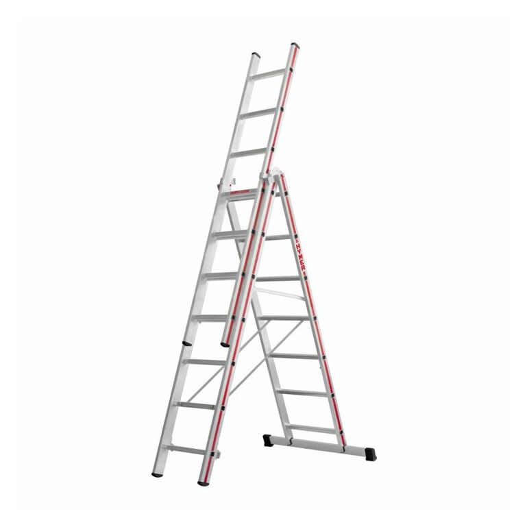 • Kombinierbare Steh- und Schiebeleiter mit vielen verschiedenen Verwendungsmöglichkeiten: Stehleiter , Stehleiter mit Steckteil, Anlegeleiter (1-, 2- oder 3-teilig)