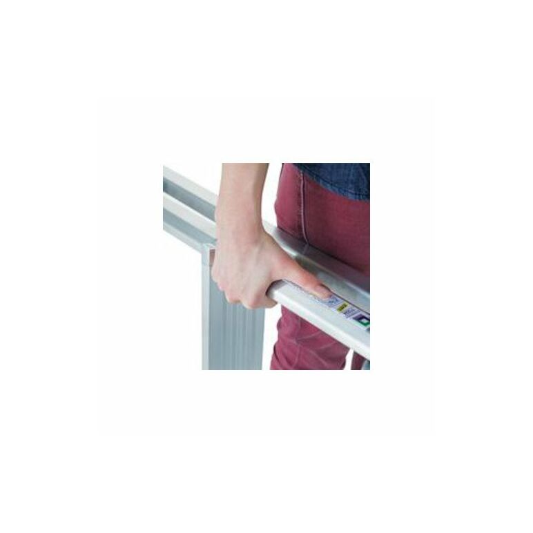 80 mm tiefe, geriffelte Aluminium-Stufen und rutschsichere, geriffelte Kunststoff-Leiterfüße zur vollflächigen Auflage auf dem Untergrund
