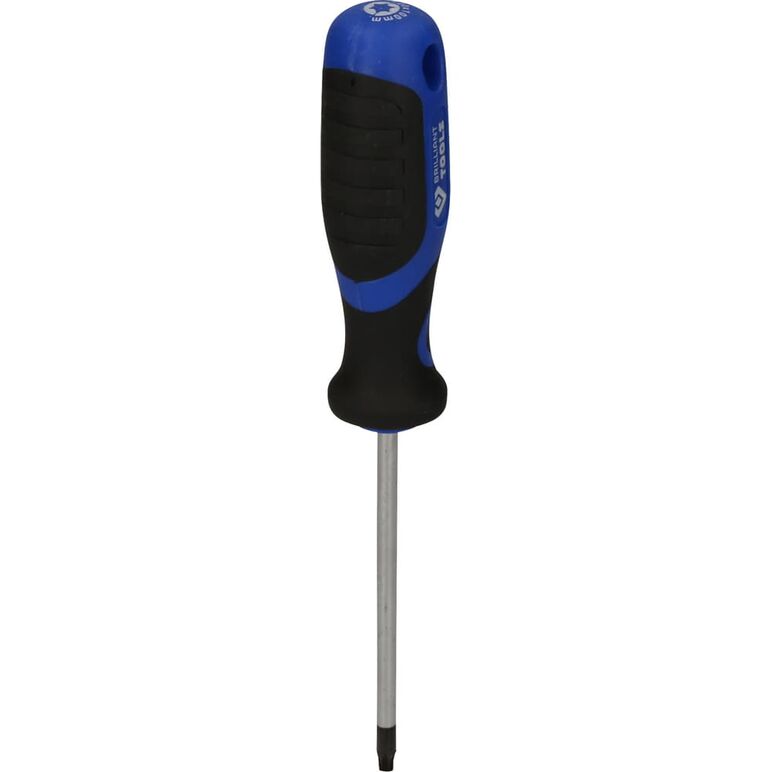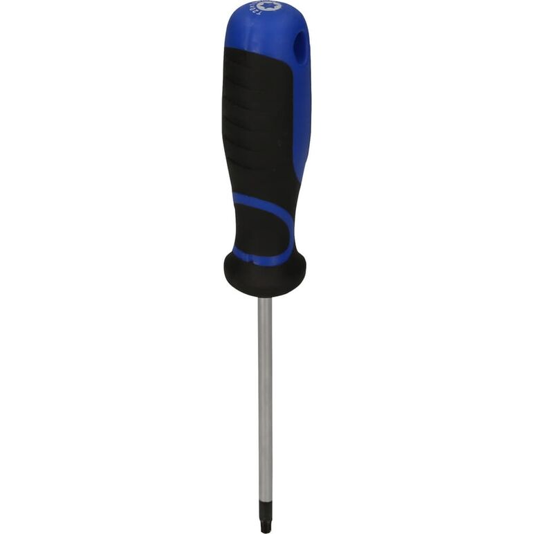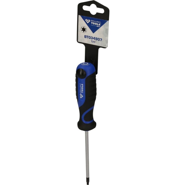 Der BRILLIANT TOOLS Torx Schraubendreher mit Schlagkappe BT034907 mit einer Klingengröße T20, ist der perfekte Problemlöser bei festsitzenden Schrauben. Diese werden durch leichte Schläge mit einem Hammer auf die Schlagkappe gelockert. Durch den Antriebssechskant an der Klinge kann an dieser Stelle zur Unterstützung ein Schraubenschlüssel eingesetzt werden. Der Schraubendreher hat eine Klingenlänge von 10 cm.