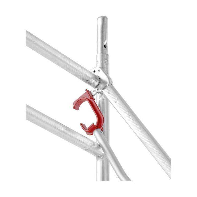 • Mit dem HYMER-Lifter lassen sich die Geländerstangen schnell und sicherer einhängen, somit ist ein absolut sicheres Arbeiten auf der jeweils obersten Arbeitsbühne gewährleistet