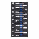 • 9 Bit-Einsätze, Antrieb Innenvierkant 12,5 mm (1/2"), Innensechskant 5 - 6 - 7 - 8 - 10 - 12 - 14 - 17 - 19 mm, Länge: 55 mm