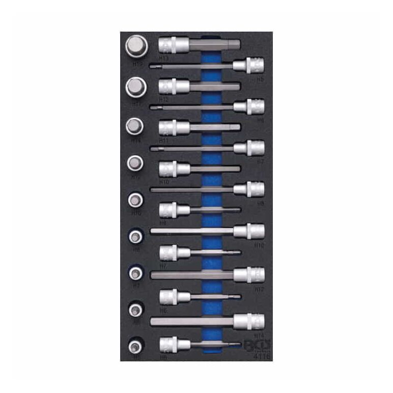 BGS Werkstattwageneinlage 1/3: Bit-Einsatz-Satz Antrieb Innenvierkant 12,5 mm (1/2 Zoll) Innensechskant 24 teilig