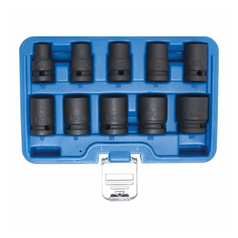 BGS Kraft-Steckschlüssel-Einsatz-Satz Sechskant Antrieb Innenvierkant 12,5 mm SW 10 - 24 mm 10-tlg.
