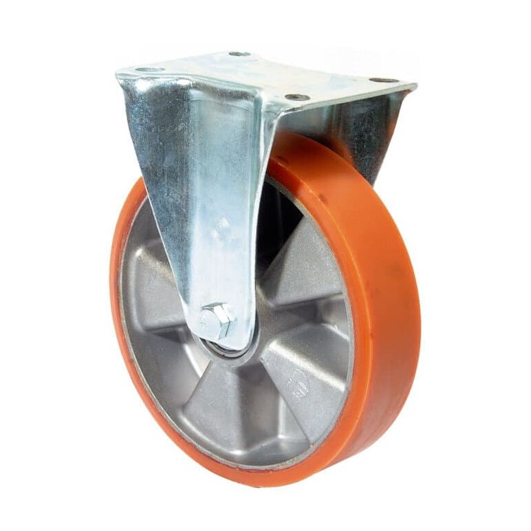 Stahlblechgehäuse, verzinkt-chromatiert · Lauffläche aus Guß-Polyurethan, Härte 95 +/- 3 Shore A · Radkörper aus Aluminium, hohe Tragfähigkeit, minimaler Rollwiderstand · geräuscharmer Lauf, große Abrieb- und Reißfestigkeit, beständig gegen Fette, Öle usw. · Arbeitstemperatur -20 °C/+ 80 °C · Kugellager · mit Plattenbefestigung Weitere technische Eigenschaften: · Oberfläche Gehäuse: verzinkt-chromatiert · Schraubloch-Ø: 11mm · Befestigungsart: mit Anschraubplatte · Bauhöhe: 181mm · Schraublochentfernung: 105 x 75/80mm · Arbeitstemperatur: -20 - 80°C · Material Gehäuse: Stahlblech · Plattenlänge: 138mm · Radkörper: Aluminium