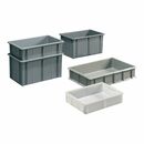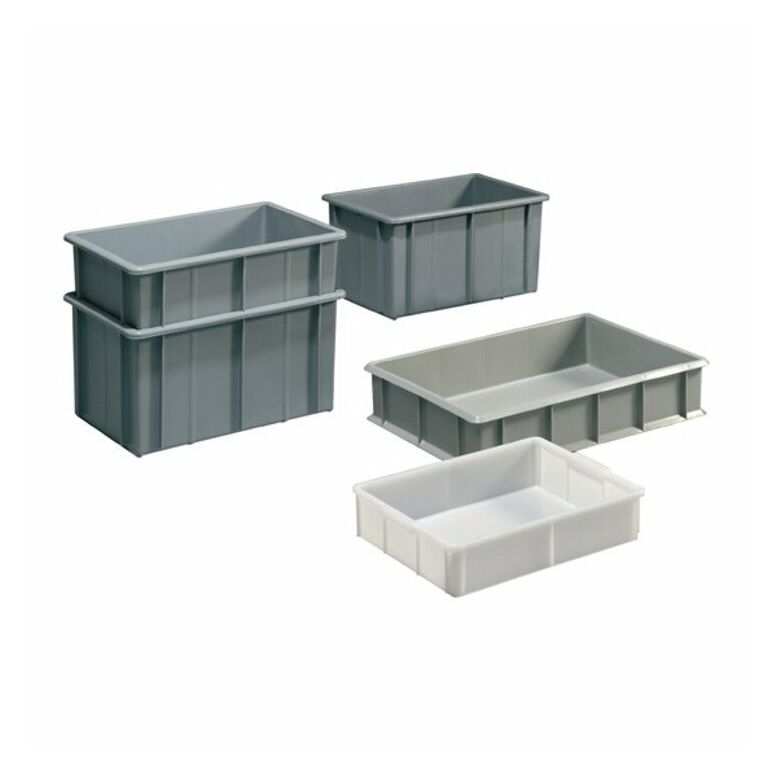 aus Polyethylen · hochbelastbar und ausgestattet mit extra-stabilisierenden Stapelrippen · glatte Innenflächen, leicht zu reinigen · lebensmittelecht · temperaturbeständig von -20 °C bis +90 °C · Farbe grau · Art.-Nr. 9000 450 320 naturfarben Weitere technische Eigenschaften: · Innenlänge: 463mm · Innenbreite: 300mm