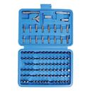 95 gemischte Chrom-Vanadium-Bits: Schlitz, Phillips-Kreuzschlitz, PZ, Innensechskant (Standard- und manipulationssicher, metrisch und zöllig), Trx (Standard- und manipulationssicher), Tri-Wing und Quadro-Wing und gemischte Bits für elektrische Haushaltsgeräte. Inklusive Hakeneindreher, drei Adaptern und 60-mm-Bithalter. Kompakte Aufbewahrungskassette.