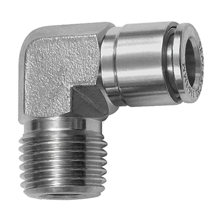 - L-Steckverschraubung, R 1/4 a., für Schlauch-Außen-Ø 6 mm, Arbeitsdruck max. 20 bar, Edelstahl 1.4404. Für den Einsatz in aggressiveren Umgebungen und bei korrosiven Medien